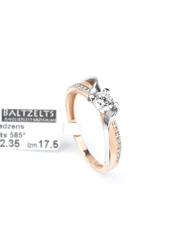 Sarkanā zelta gredzens ar cirkoniem un balto zeltu (A)